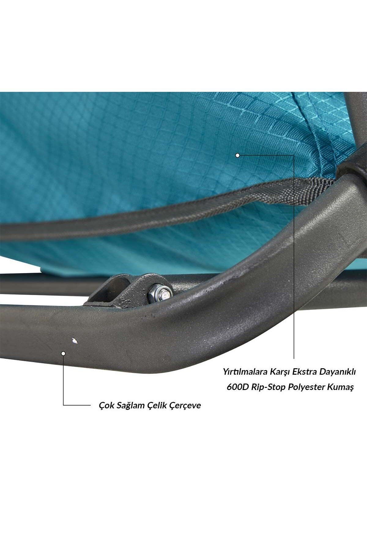 Ekstra sağlam ve hafif çelik çerçeve.yerden tasarruf etmek için katlanma özelliğne sahiptir. Bagajda veya karavanda idealdir. Sabitlemek için cırt cırtlı kayışları mevcuttur.