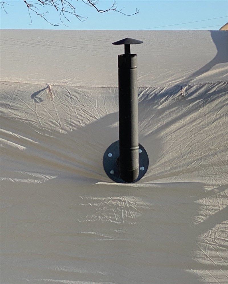NOT: BACA FLANŞI, SOBA BORULARININ ÇADIRA ZARAR VERMEMESİ AMACIYLA KULLANILIR.