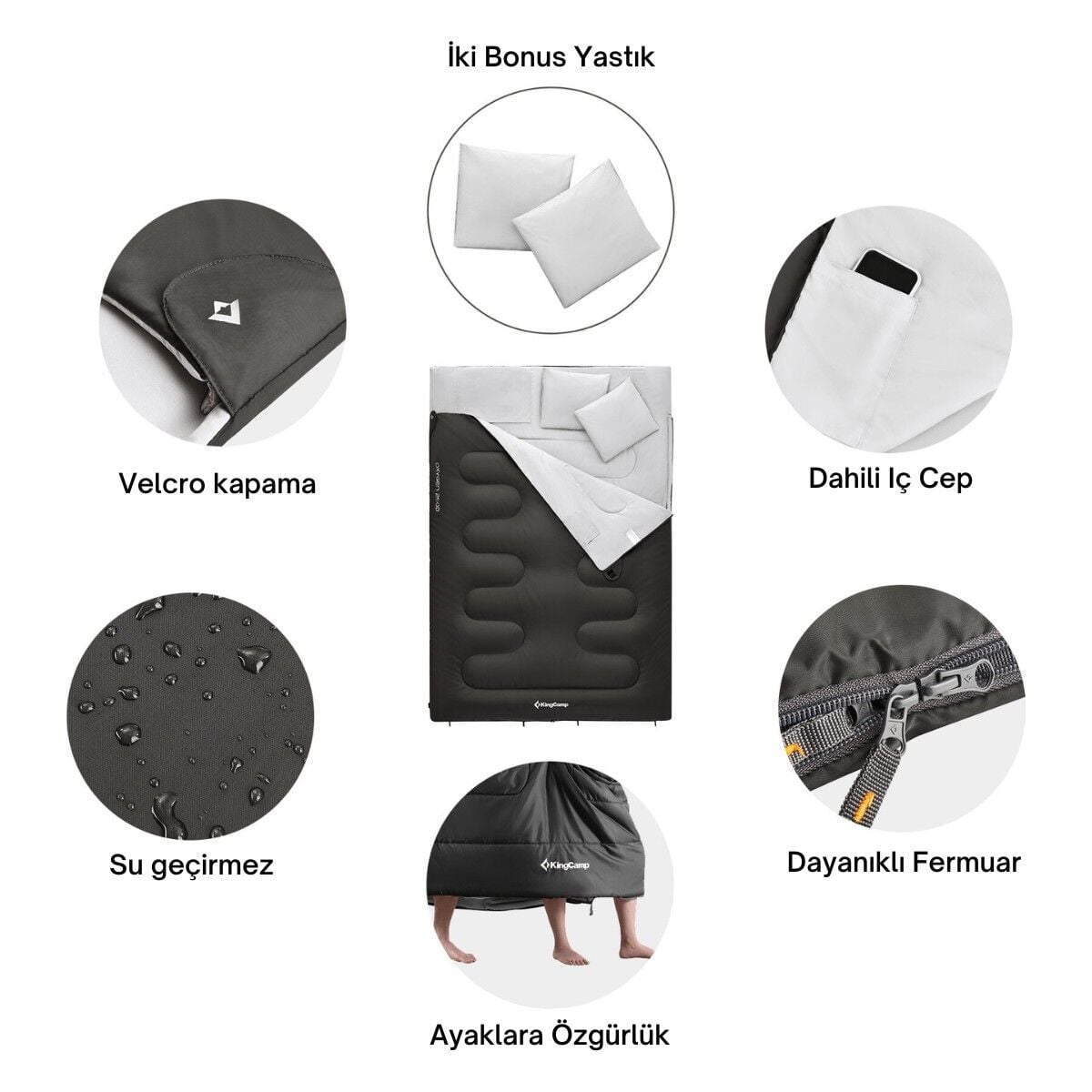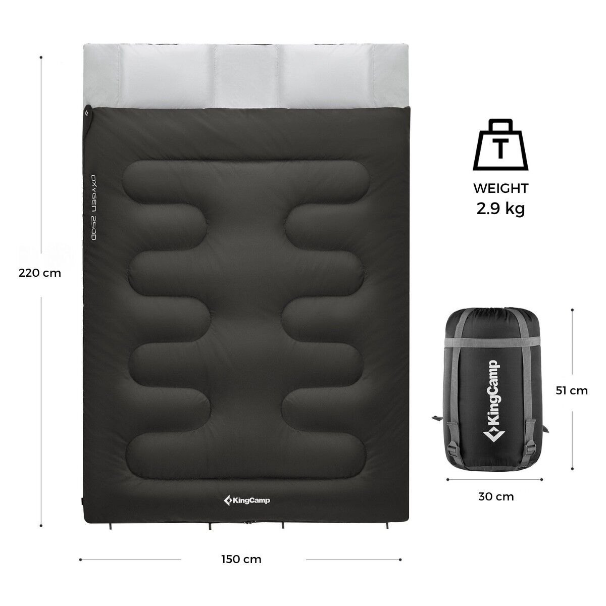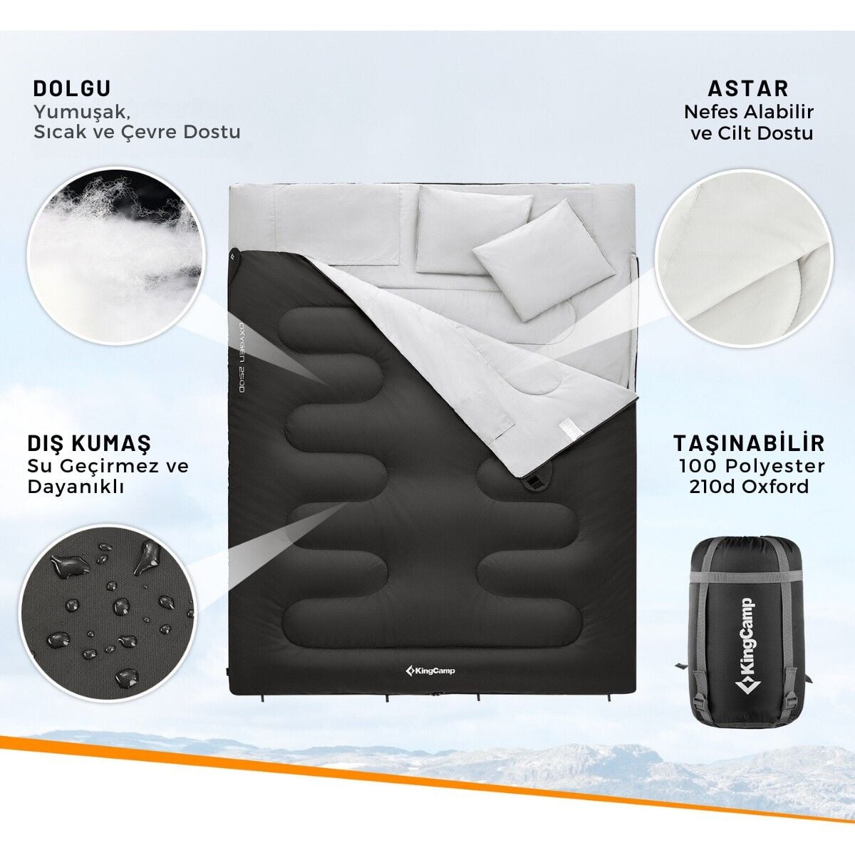 KingCamp Oxygen 250-D Çift Kişilik Yastıklı Uyku Tulumu