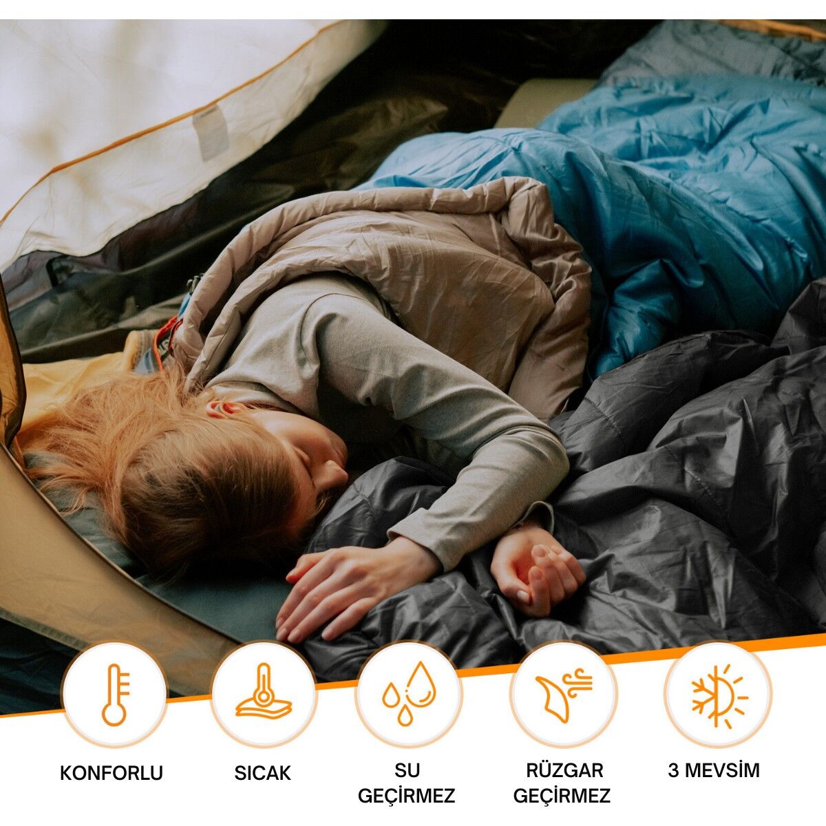 DuoSleep’i sevdiğiniz piknik örtüleri, matlar ve çadırlarla birleştirerek unutulmaz bir kamp deneyimi yaşayın. DuoSleep Dönüştürülebilir Çift Kişilik Uyku Tulumu ile kamp maceralarınıza konfor, sıcaklık ve esneklik katın.