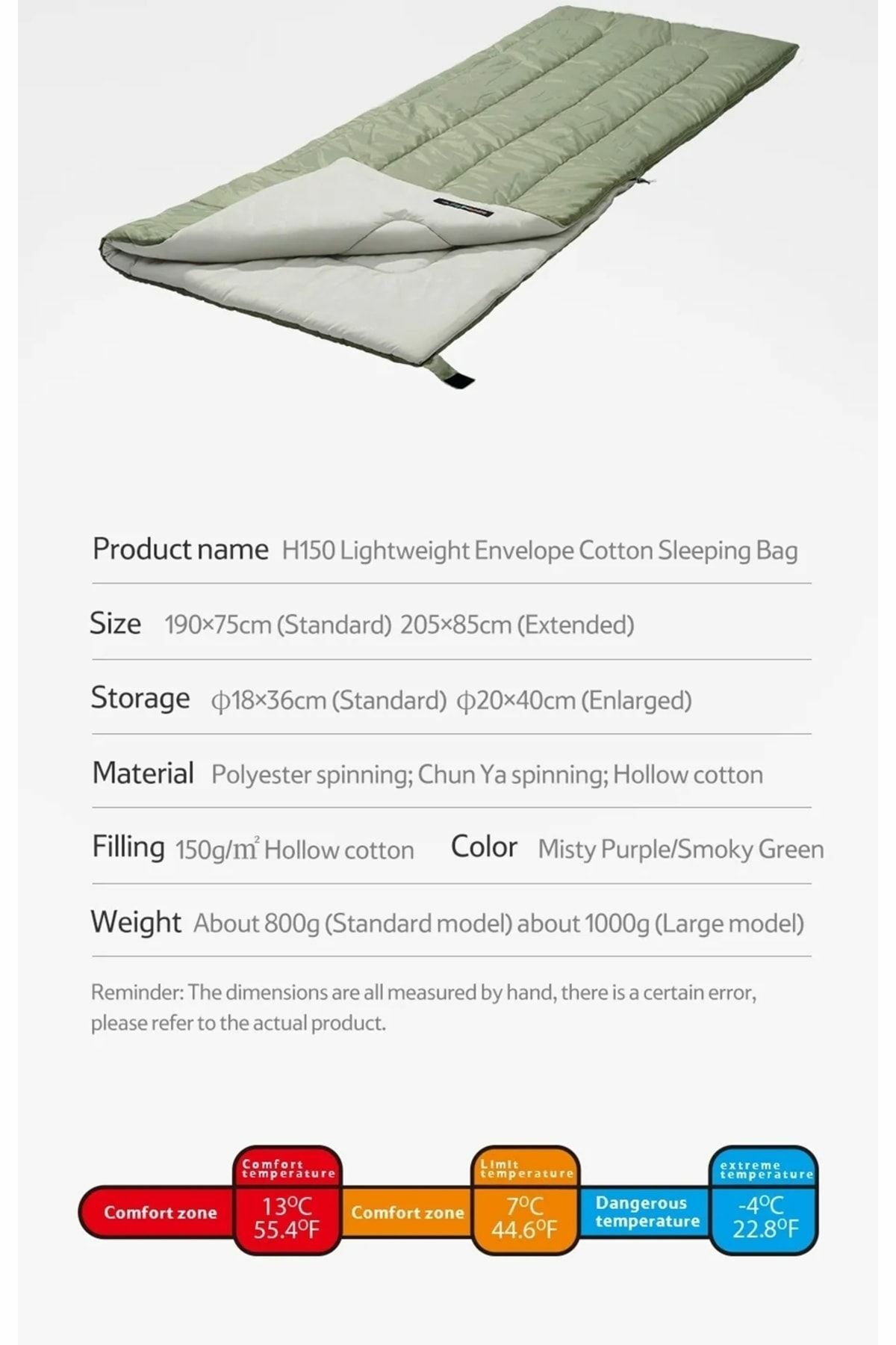 - Adı: H150 zarf tipi uyku tulumu