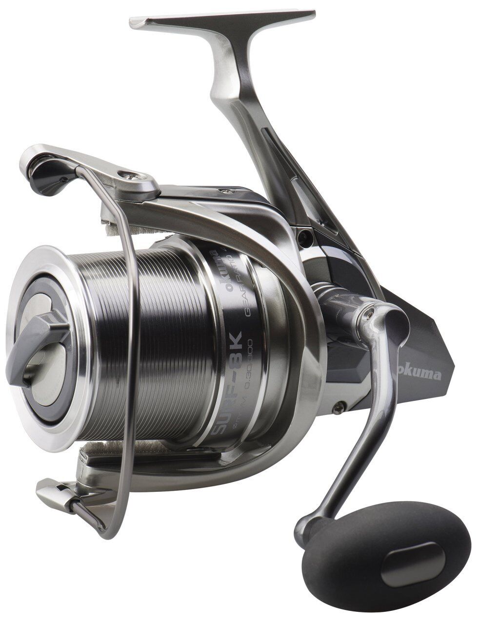 2018'de Okuma' nın yeni konsepti olan Long Casting spin makine, Surf 8K; sadece rotor fren sistemi, fırça koruyuculu rotor, hızlı ayarlanan ters dönüş kilit sistemi gibi Okuma' nın patentli tasarımlarını korumakla kalmadı, aynı zamanda tüm fonksiyonları ve parçaları yükseltti. Surf 8K, solucan milli güç aktarma ve süper yavaş salınım sistemlerine (SOS) sahiptir. Misina daha düz ve sıkı sarım yaptığı için atışlarda daha az sürtünme ve daha iyi performans sağlar. Daha uzun atış menzili için tasarlanmış konik makara yeterli açı varsa uzun atış sağlar.