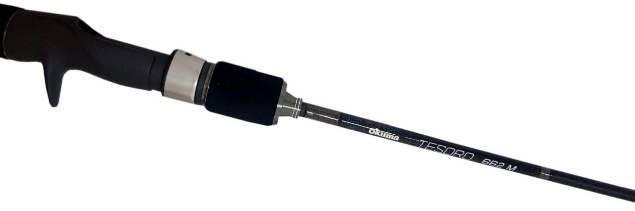 Okuma Tesoro Jigging Kamışında çok hafif ve iletken 24 ton karbon kamış gövde, UFR teknolojisi ve Fuji ağır hizmete uygun makine yatağı ve LO/AN çift kilit kullanıldı.