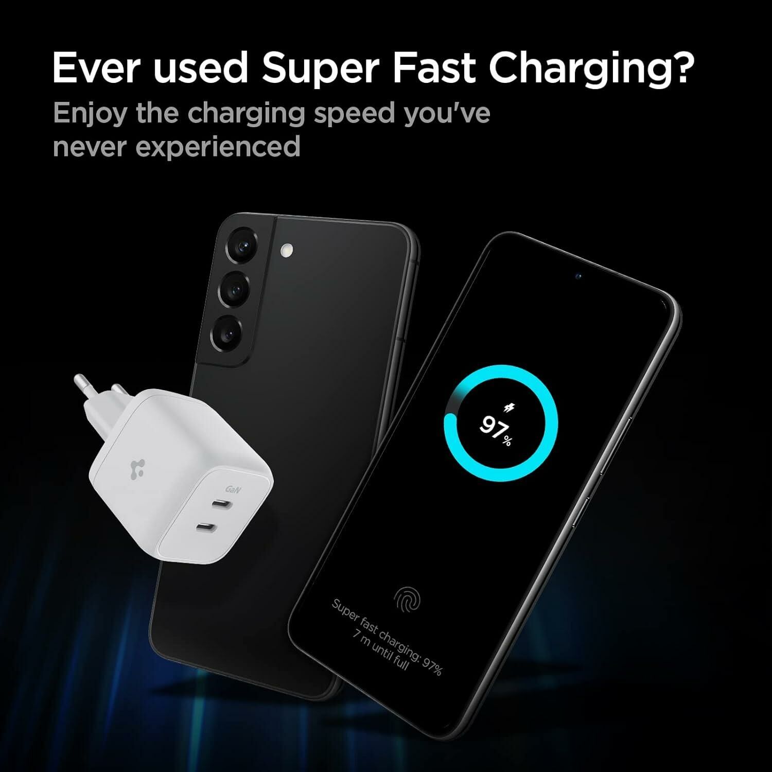 Spigen 45W USB-C 2 Port Mini Adaptör Samsung PPS 2.0 Şarj Isı Düşürücü GaN Hızlı Şarj Aleti iPhone & Android & iPad & MacBook Type-C PE2105 White - ACH03717