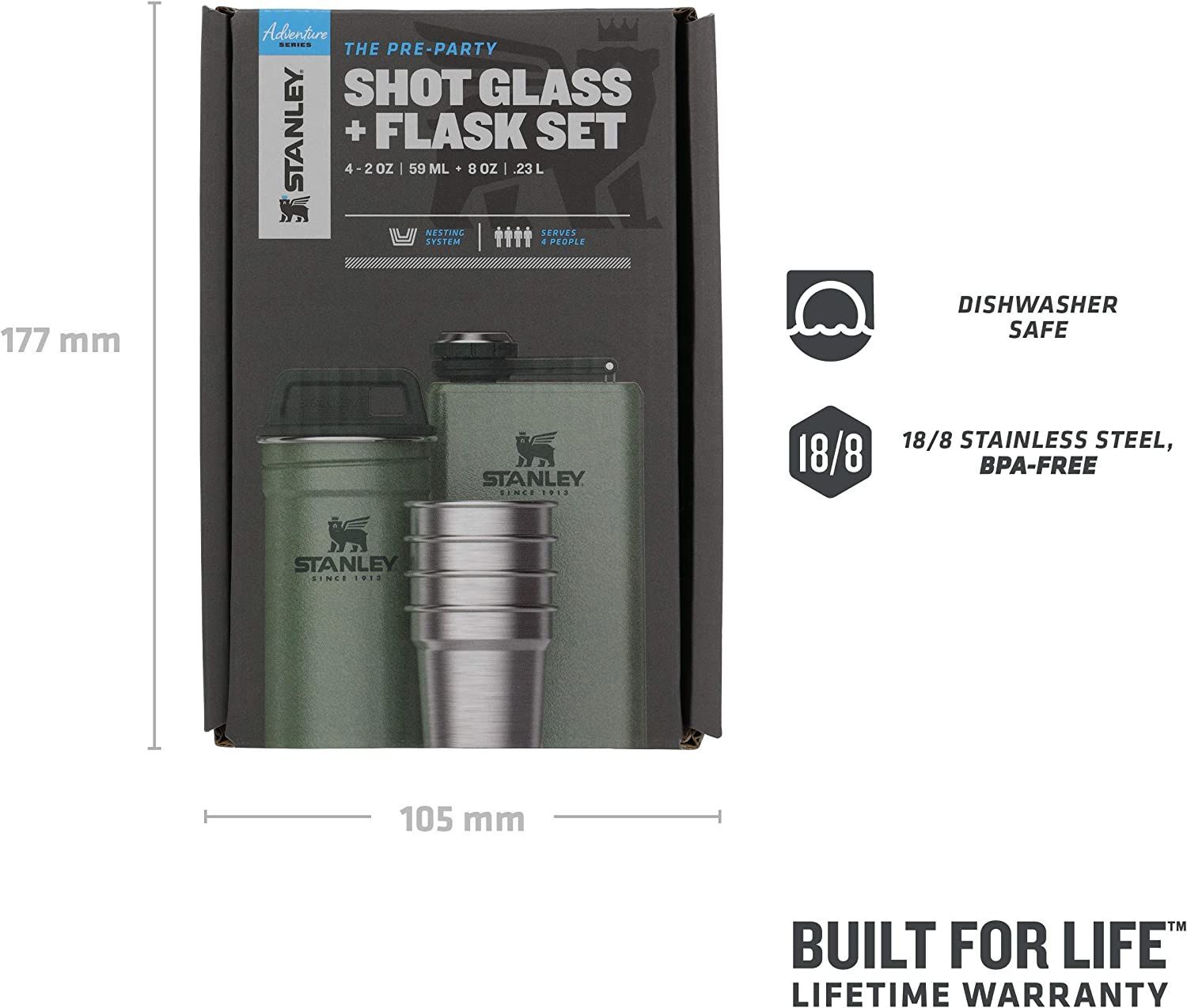 - Set İçeriği: [4] Shot bardakları (2 OZ / 59 ML) [1] Paslanmaz çelik taşıma çantası [1] Şişe (8 OZ / .32 L)