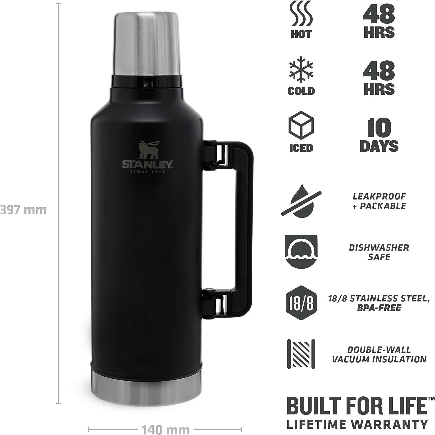 Macerayı bütün gün, bütün gece ve ertesi sabaha kadar devam ettirin. Stanley 2.3 lt termos, bütün bir demlik kahveyi veya içtiğiniz her şeyi, 48 saate kadar sıcak veya soğuk tutabilir. Buzlu içeceklerinizi ise 240 saate kadar muhafaza eder. Ayrıca sızdırmaz, paketlenebilir ve dökmesi kolaydır, bu da onu herhangi bir bagaj kapısında veya kampta hoş bir arkadaş haline getirir. Ağzı geniş olduğu için içini doldurması ve boşalınca temizlemesi çok kolaydır. 18/8 paslanmaz çelik ve BPA'sız malzemelerle üretilmiştir. Kapağı bardak olarak kullanılabilir, ömür boyu garantilidir ve sizi asla yarı yolda bırakmaz.