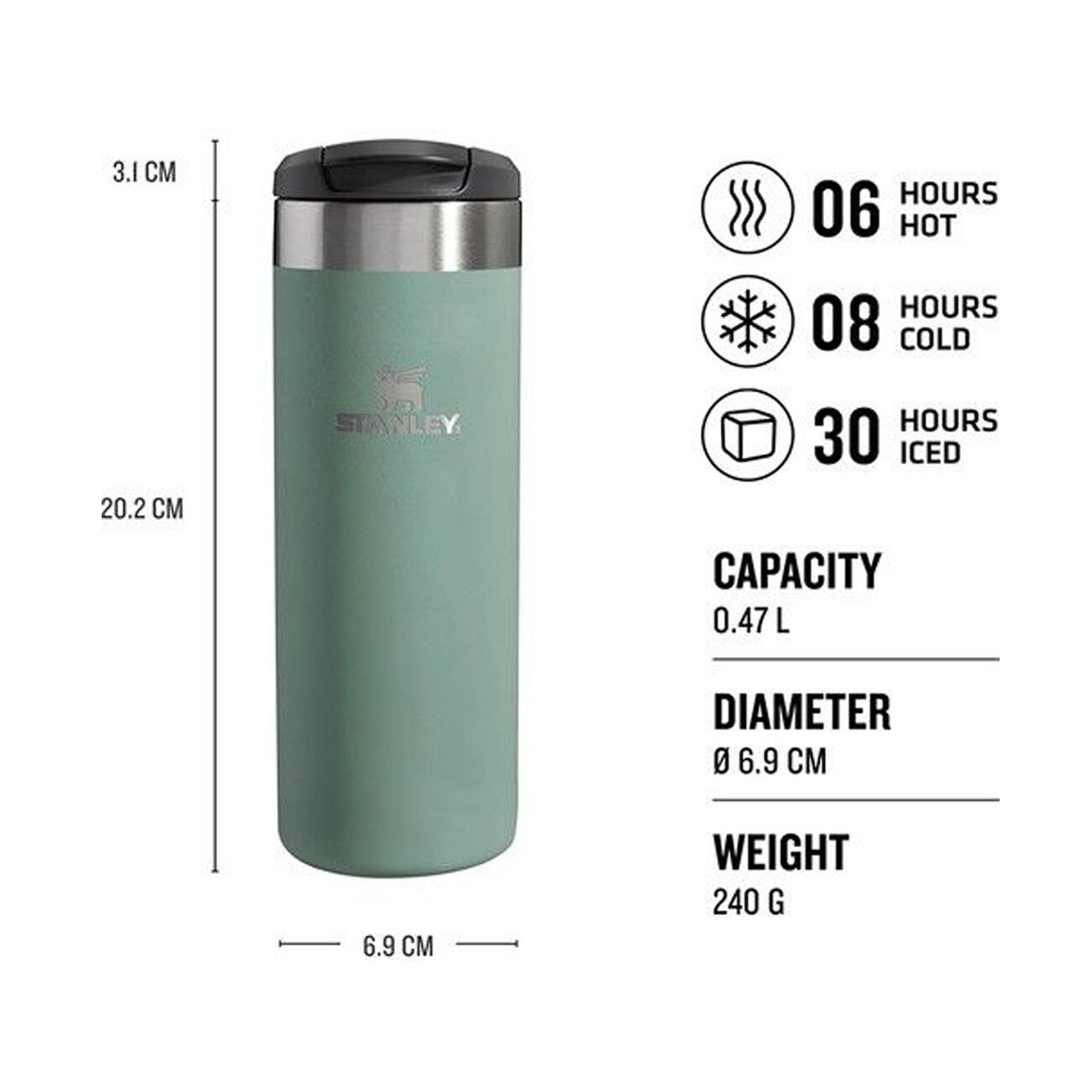 Stanley termos bardak 18/8 yüksek kalite, gıdada kullanıma uygun paslanmaz çelikten, hafif, dayanıklı, BPA'sız malzemelerden üretilmiştir.