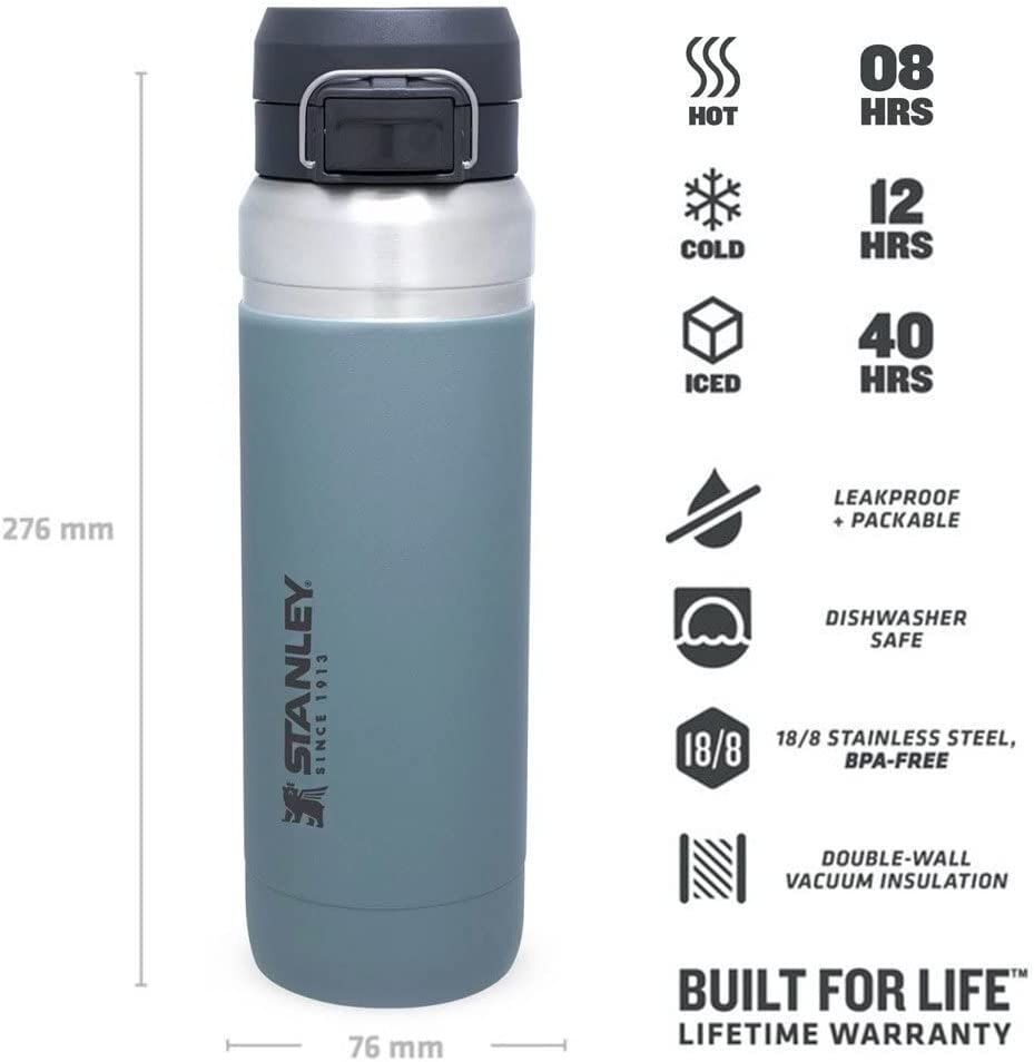 Hareket halindeyken susuz kalmamanız için tasarlandı; Stanley Quick Flip serisi elde rahat taşınır, çantanıza takılabilir; çift duvar vakumlu yalıtımı ile içeceklerinizi 8 saat sıcak, 12 saat soğuk ve 40 saat buzlu tutar.