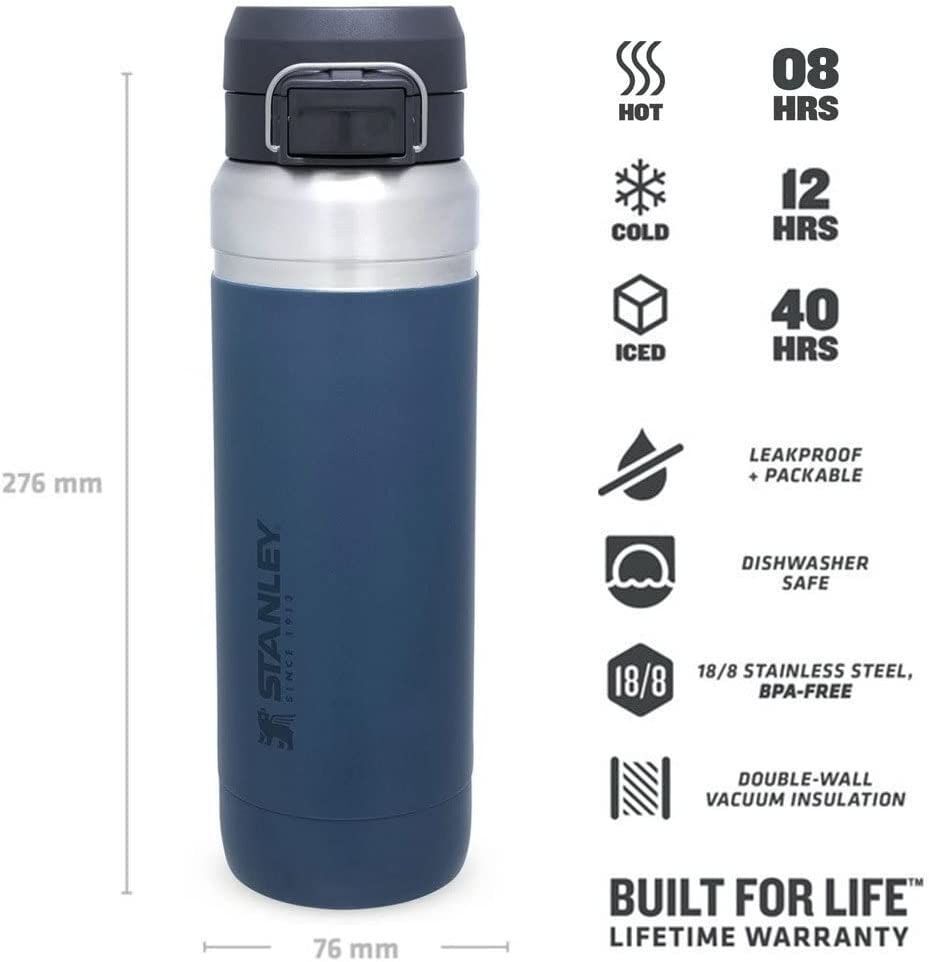 Hareket halindeyken susuz kalmamanız için tasarlandı; Stanley Quick Flip serisi elde rahat taşınır, çantanıza takılabilir; çift duvar vakumlu yalıtımı ile içeceklerinizi 8 saat sıcak, 12 saat soğuk ve 40 saat buzlu tutar.