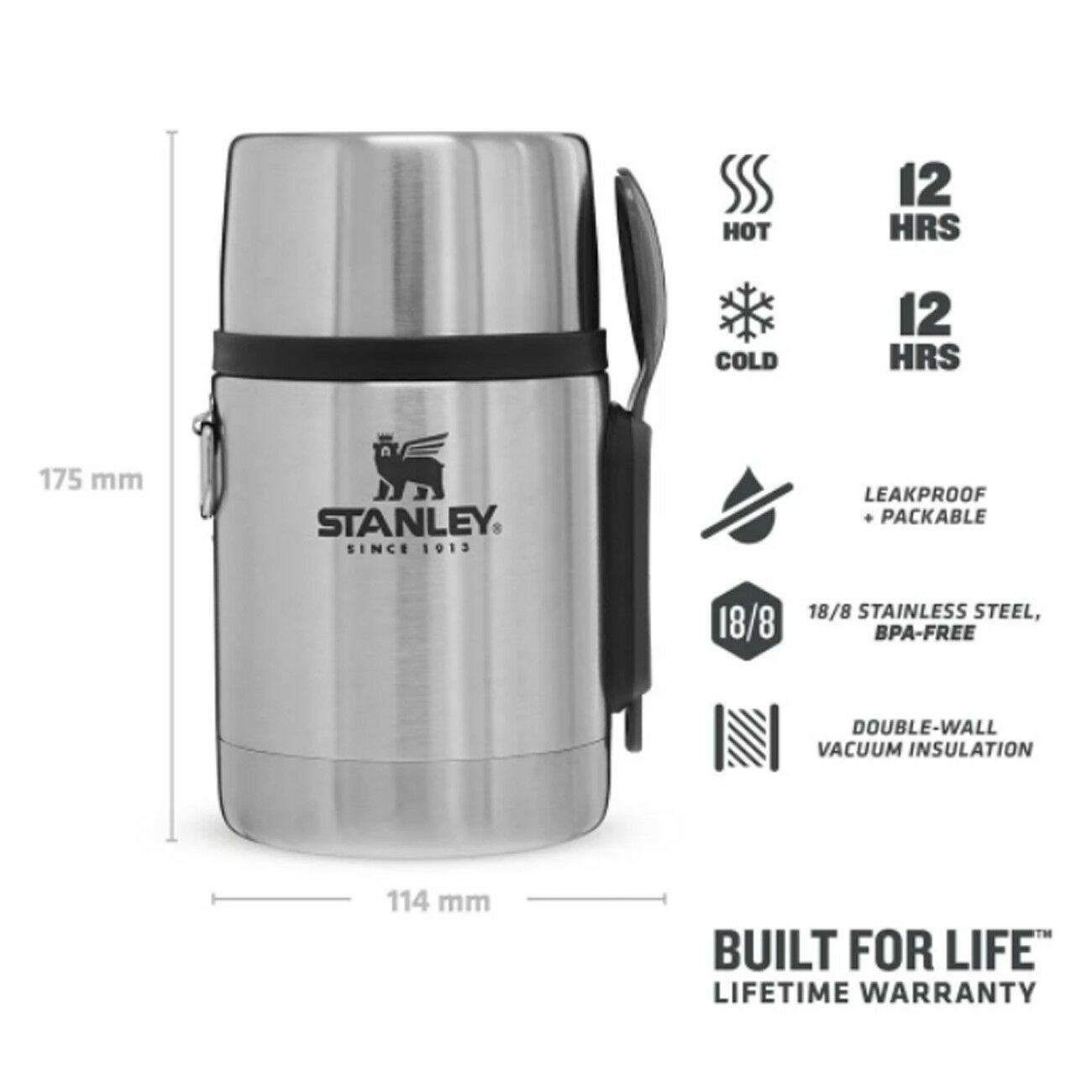 Her termos entegre kaşala sahiptir; stanley çift duvar vakum yalıtımı ile yiyecekleriniz 12 saate kadar sıcak veya soğuk bir şekilde korur. .