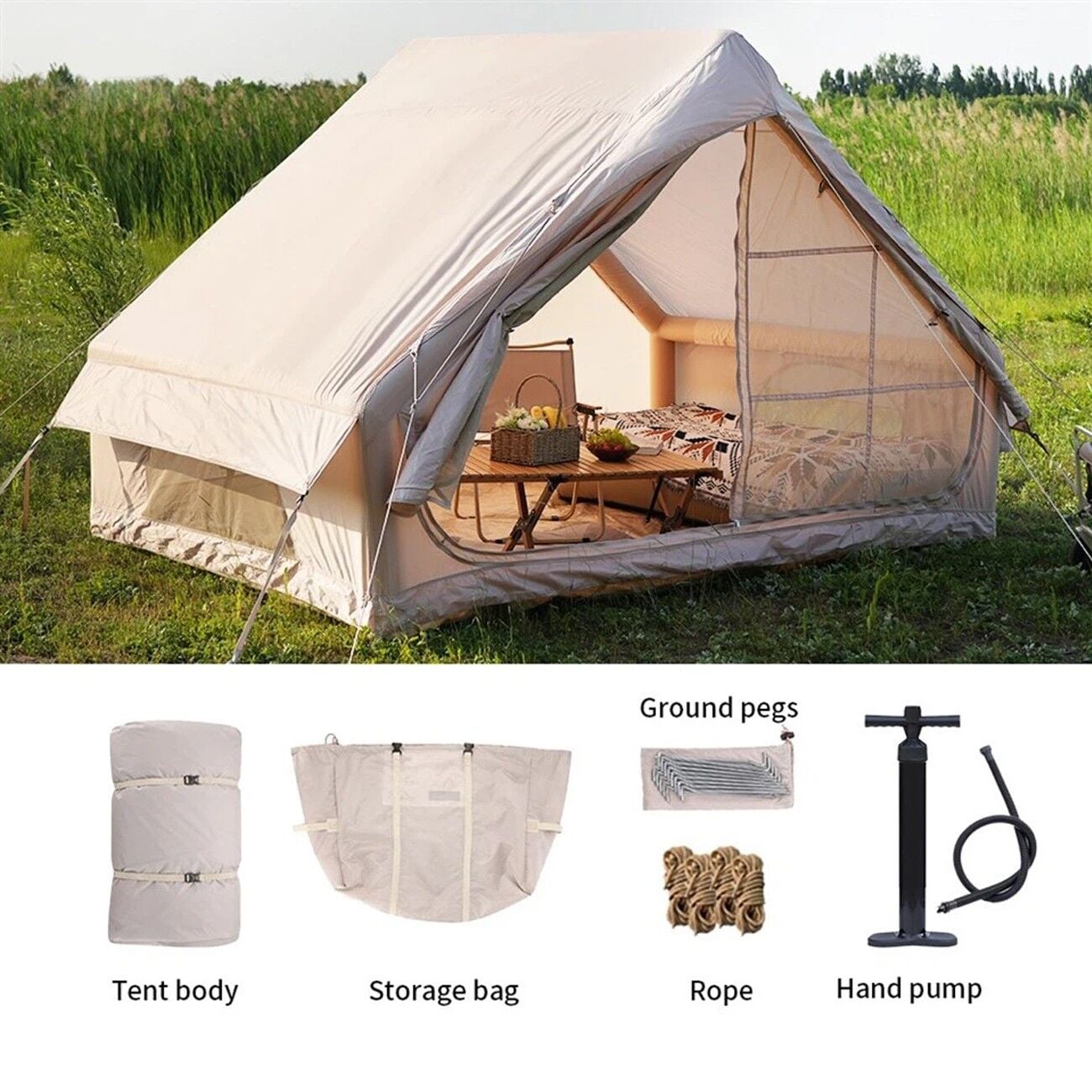 Karmaşık direklerle uğraşmaya gerek yok! Pakete dahil özel pompası sayesinde şişme direkleri dakikalar içinde hazır hale gelir. Hızlıca kurulur, doğanın tadını çıkarmaya zaman kalır.