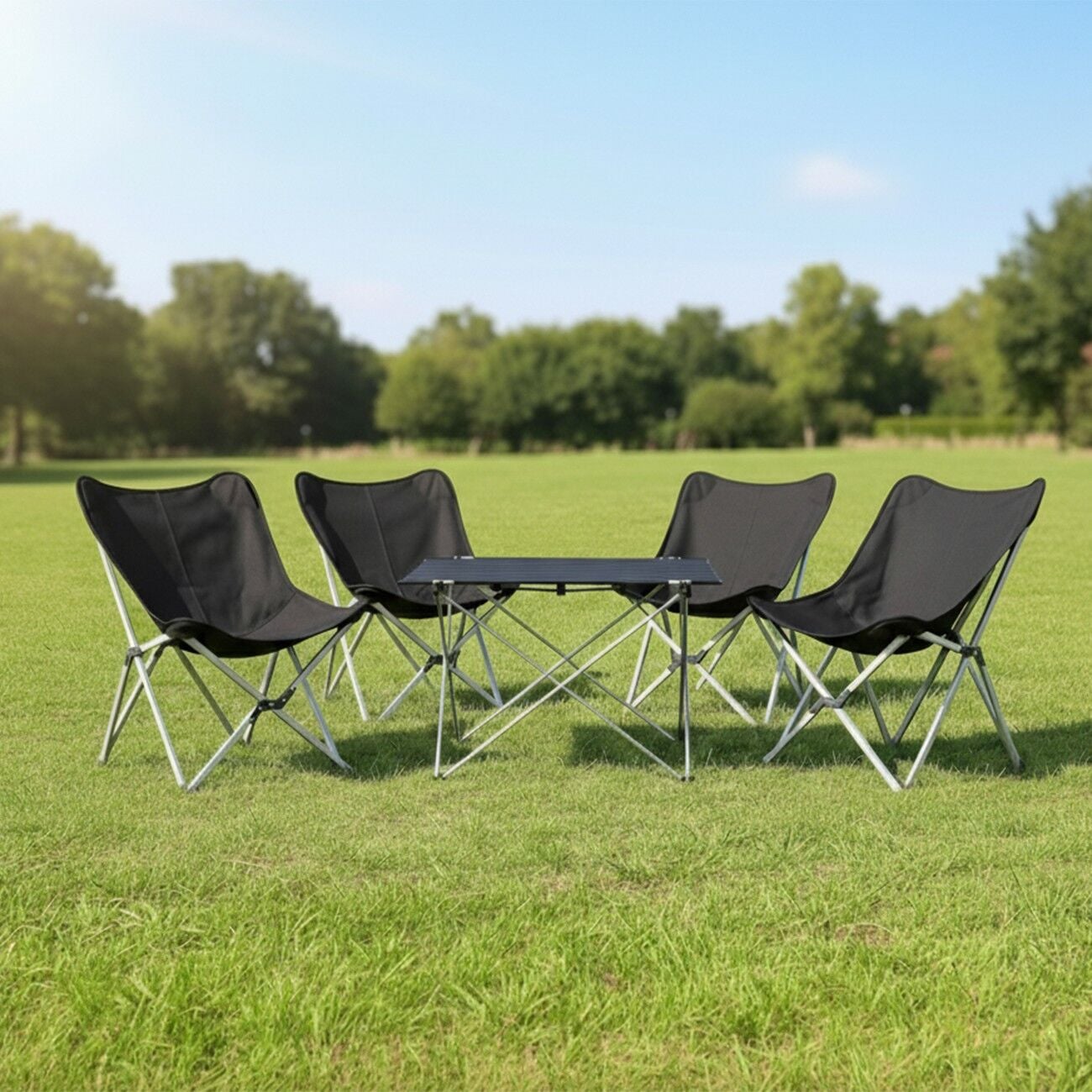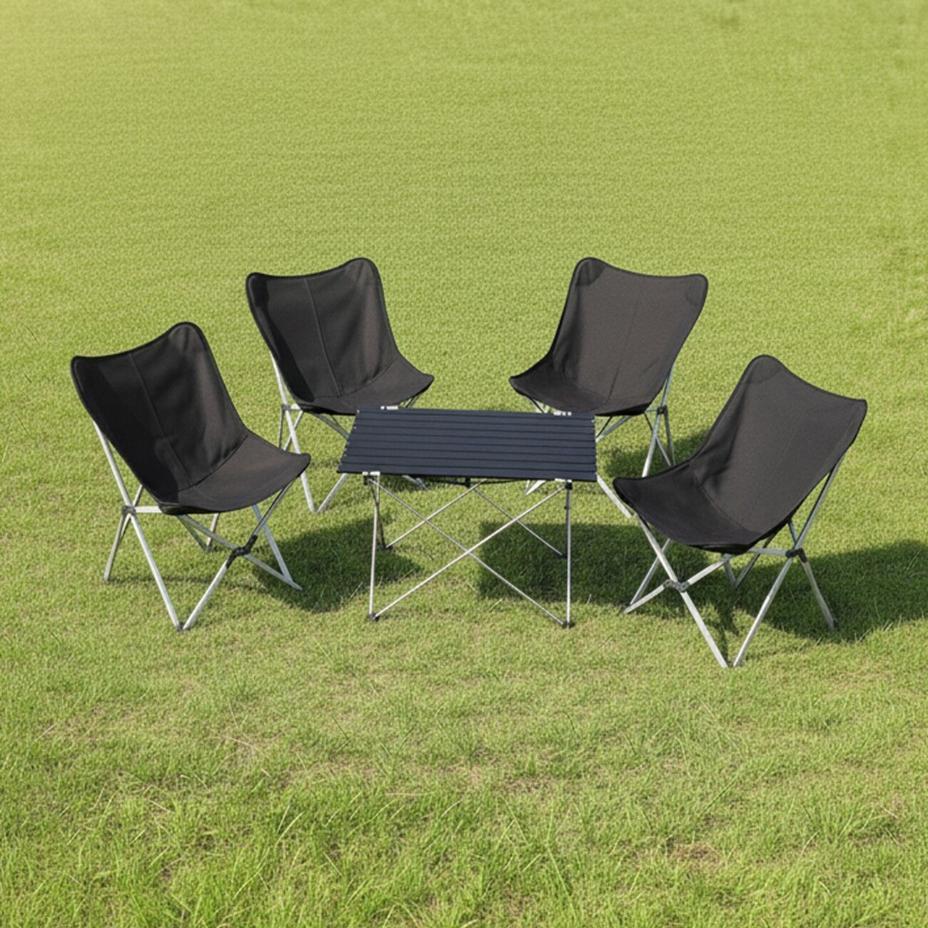 Yek Outdoor Kamp Seti – 1 Masa + 4 Alüminyum Katlanır Kamp Sandalyesi (Siyah)