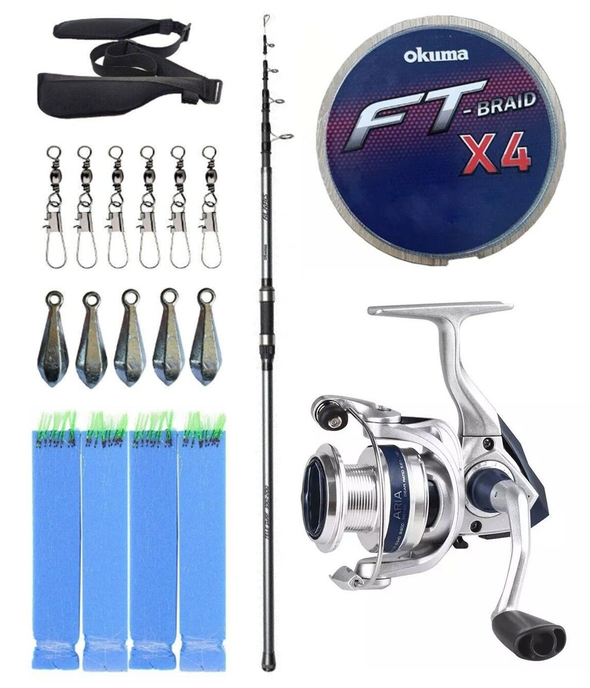 Bu set, kıyıdan uzun mesafe atışlar yaparak güçlü ve verimli balık avları gerçekleştirmek isteyenler için özenle hazırlanmıştır. İçeriğinde yer alan Okuma Alaris Light Tele Surf 420 cm 100-250 gr 4 Parça Surf Kamışı, Okuma Aria-5000a Painting Silver 1BB Olta Makinesi ve Okuma FT-4 Braided Line 300 m Grey Örgü İp, birlikte yüksek performans ve dayanıklılık sunar.