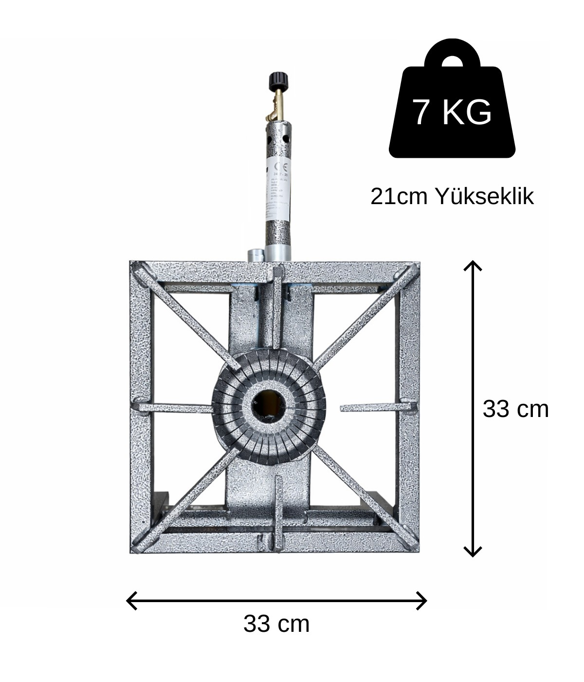 Gaz bağlantı aparatı sayesinde kolay kurulum ve güvenli kullanım. Doğrudan tüpe bağlanabilir.