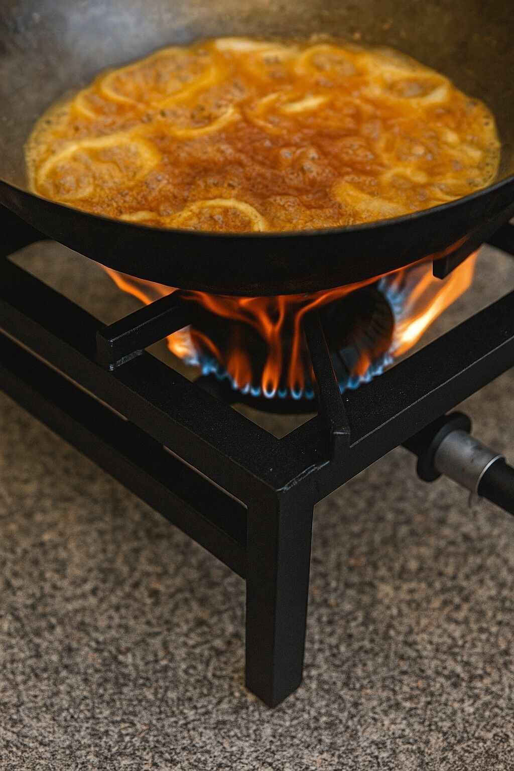Döküm brülör yapısı sayesinde yüksek ısıda verimli pişirme sağlar. Büyük kazan ve tencerelerle uyumludur.