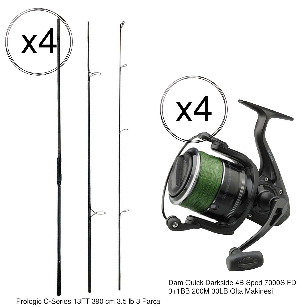 YekOutdoor Profesyonel 4'lü Göl Olta Seti Prologic C-Series 13FT 390 cm 3.5 lb 3 Parça&Dam 7000S FD 3+1BB Olta Makinesi