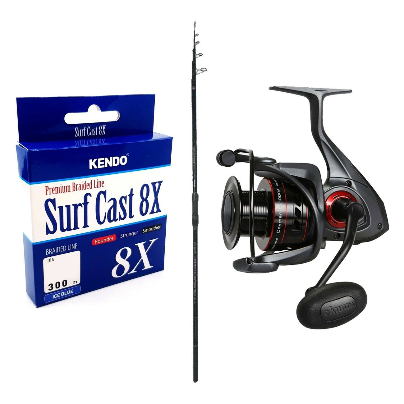 Okuma Ceymar Tele Surf kamışında, çok hafif ve hassas 30T karbon yapı, kaliteli derin pres paslanmaz çelik halkalar ve Fuji DPS makine yuvası kullanıldı.