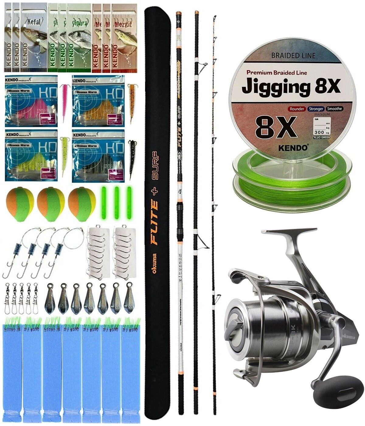YekOutdoor Profesyonel Olta Seti Okuma Flite+ Super Light Surf 420cm 3 Parça Olta Kamışı&Okuma SURF-8K Olta Makinesi