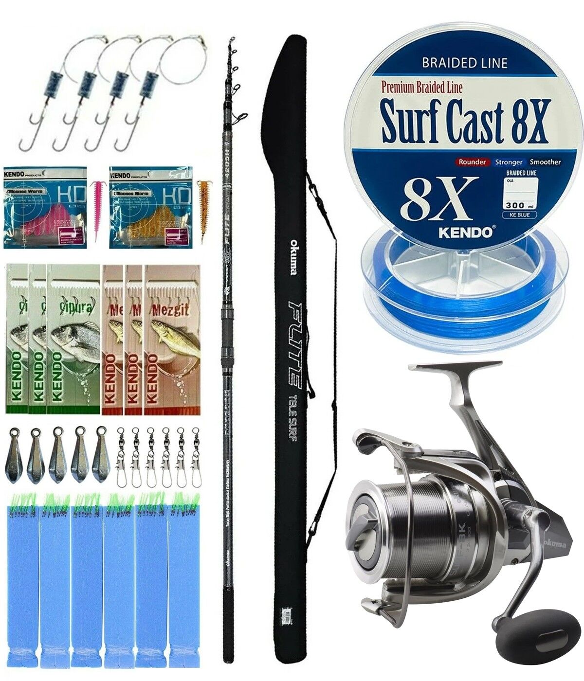 Bu set, kıyıdan surf avı için gerekli temel ekipmanların birbiriyle uyumlu şekilde bir araya getirilmiş halidir. Uzun kamış, yüksek kapasiteli makine ve örgü ip kombinasyonu ile dipten yemli av ve çaparili avlarda kullanılabilir.