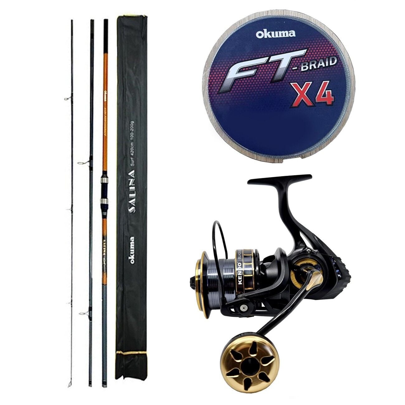 YekOutdoor Profesyonel Olta Seti Okuma Salina Surf 14' 420 cm 3 Parça Surf Kamışı&Kendo Black Bass GP10000 5+1BB Olta Makinesi