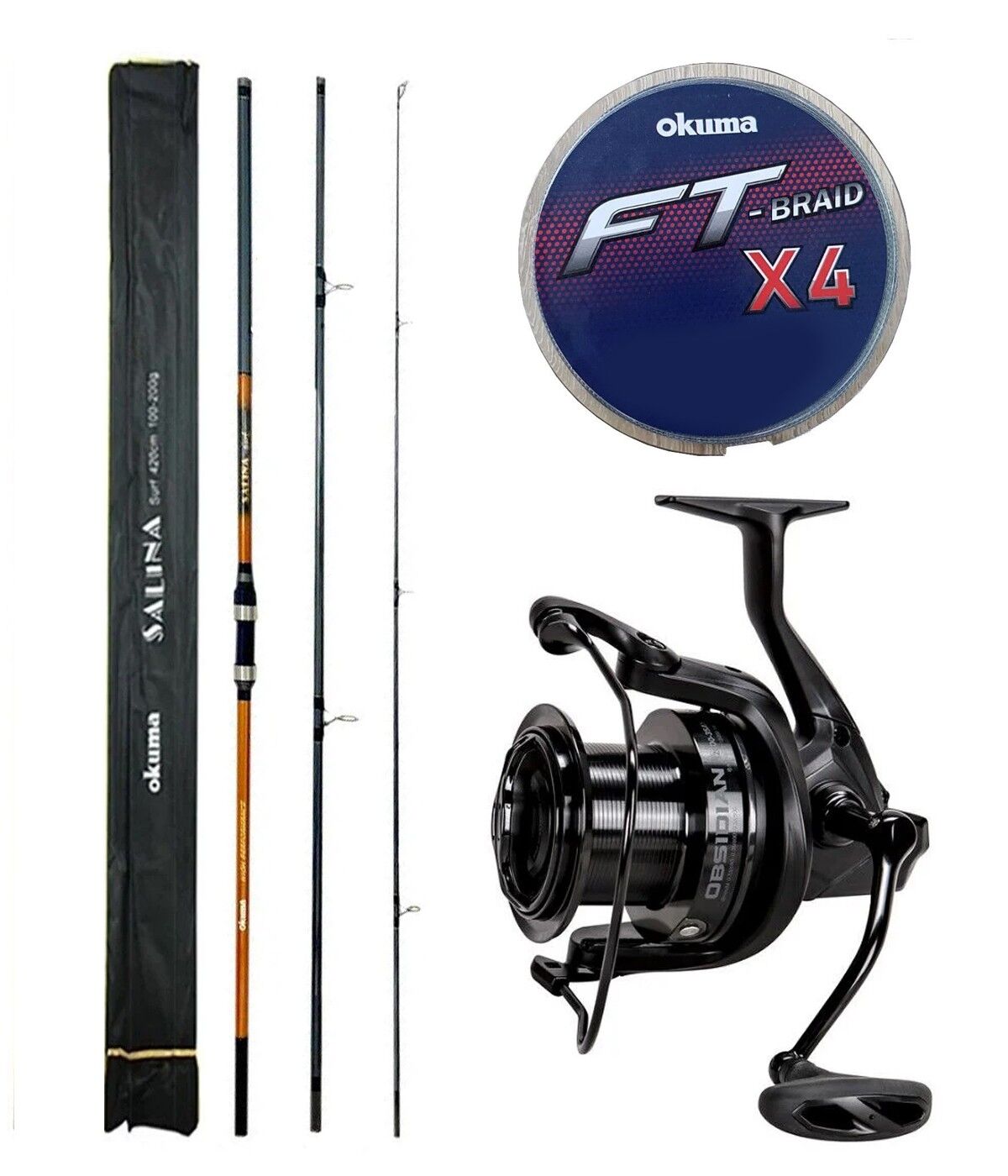 YekOutdoor Surf Olta Seti Okuma Obsidian 0SD12000-35AY Painting Black 9+1BB Olta Makinesi& Okuma Salina Surf 14' 420 cm 3 Parça Surf Kamışı