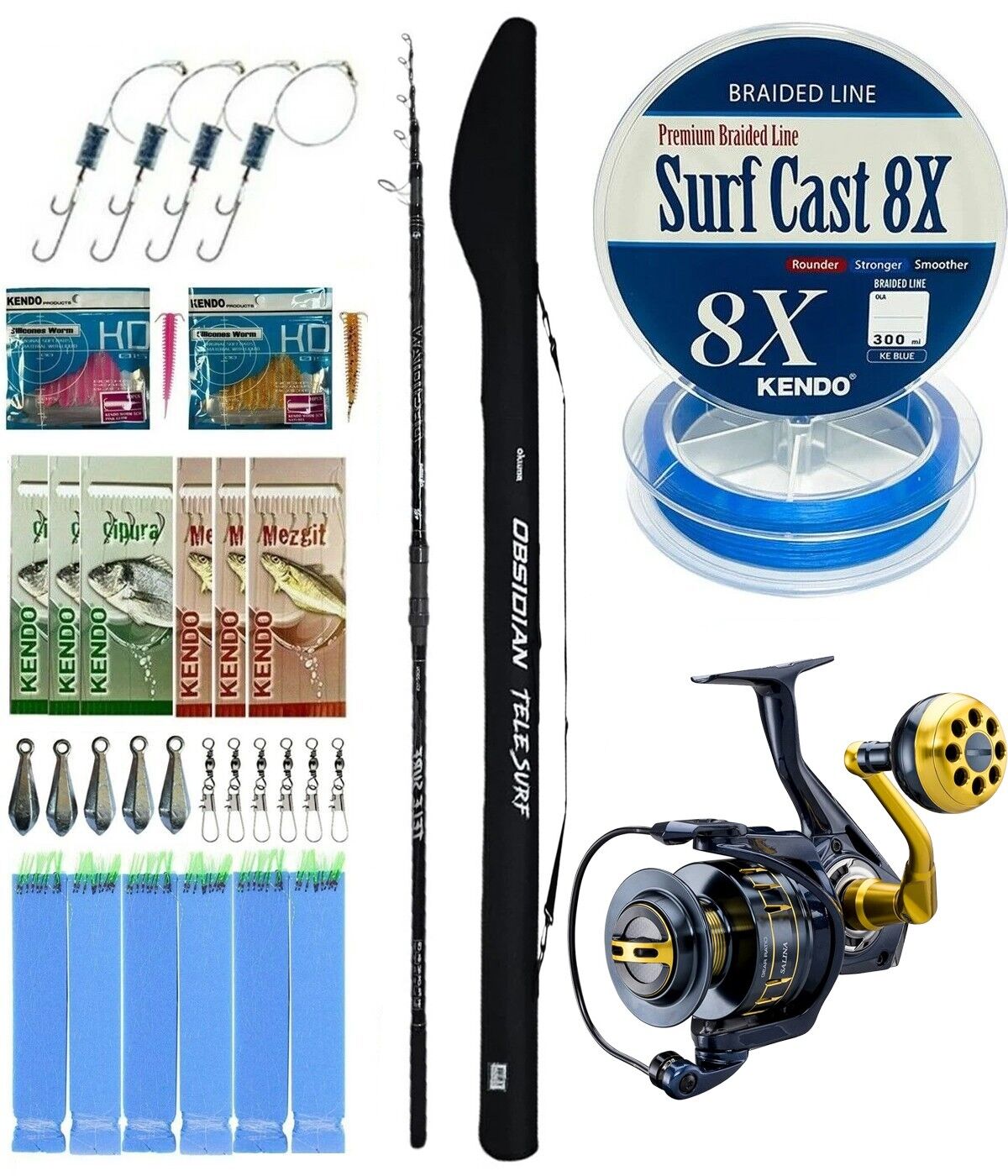 YekOutdoor Surf Olta Seti Okuma Obsidian Super Light Tele Surf 420cm 100-220gr 5 Parça Olta Kamışı&Okuma Salina SA-8000A Olta Makinesi
